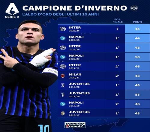 2025-26赛季 国际米兰 半程45分 最终排名:?
