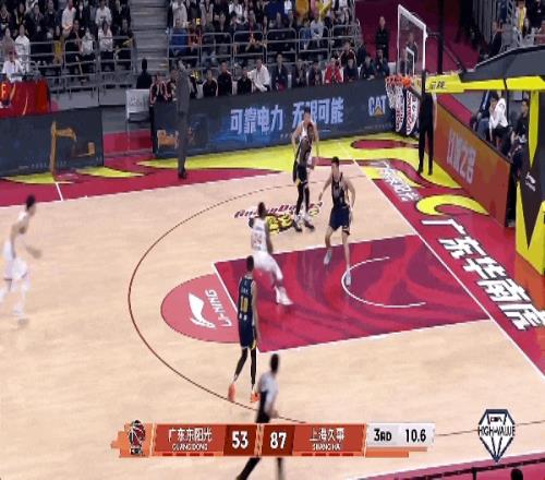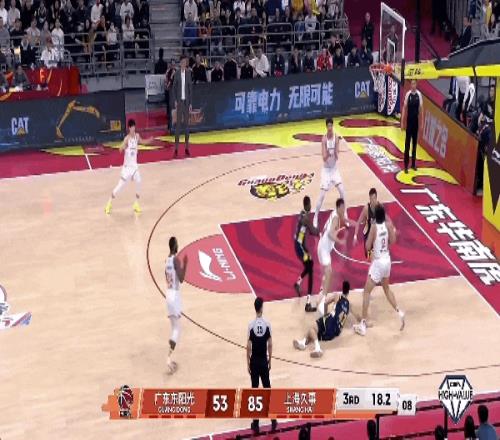 广东男篮有点被大鲨鱼打懵了,不仅毫无还手之力,还屡送失误。怀特塞德拿下篮板,古德温控球过半场,侧翼李弘权拿球出手三分命中!广东男篮的进攻稍有起色,但防守端仍然找不到办法限制上海队。