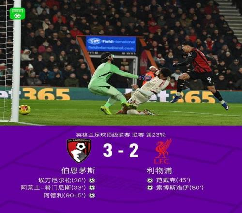 5轮不胜!利物浦23伯恩茅斯阿德利读秒绝杀范戴克送礼后破门